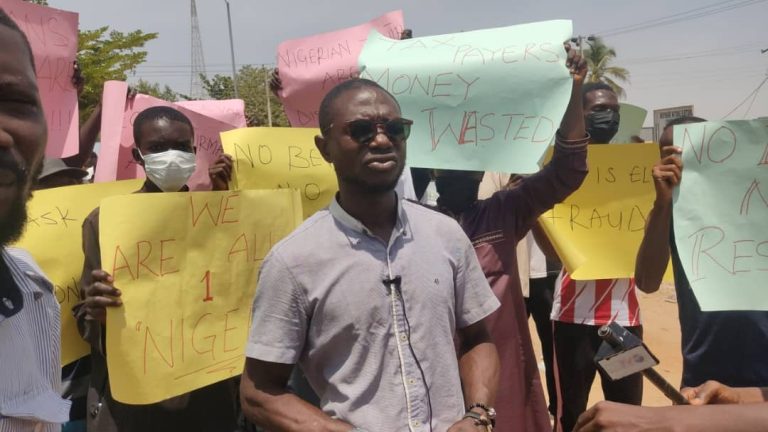 The youth, under the umbrella of the ‘Aggrieved Nigerian Youths’ alleged that there were irregularities in the conduct of the elections.
